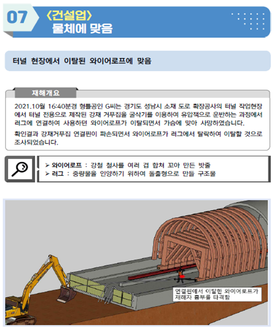 (2022년 2월 4째주 사고사례) 터널 현장에서 이탈된 와이어로프에 맞음